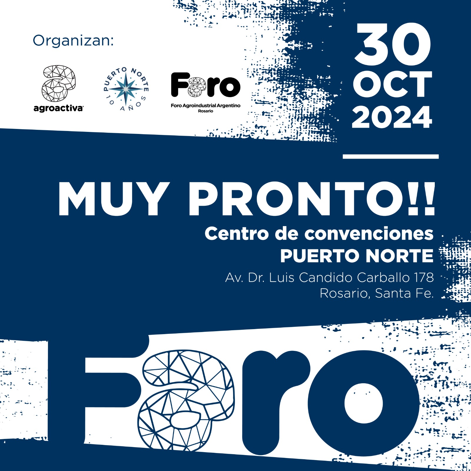 Con la presencia de destacados especialistas, el próximo 30 de octubre se realizará la primera edición de FARO (Foro Agroindustrial Argentino –Rosario), organizado por AgroActiva y Puerto Norte.